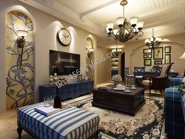 大洋五洲一期地中海风格72平米两居室装修案例风效果图