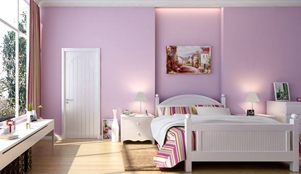 刷涂料时,首先要对墙面进行找平、打磨,然后在刷涂料。对于上部和顶面交接处可以用石膏线做阴角,下部与地面交接处用踢脚线收口。这种处理简洁明快,房间显得宽敞明亮,但缺少变化。