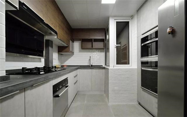 ▼U形厨房,定制了上下橱柜。不同于以往的设计清洗区上侧预留出油盐酱醋储物区,无门设计使拿取一目了然。小白砖的外露搭配,使厨房整体看起来更清爽洁净。