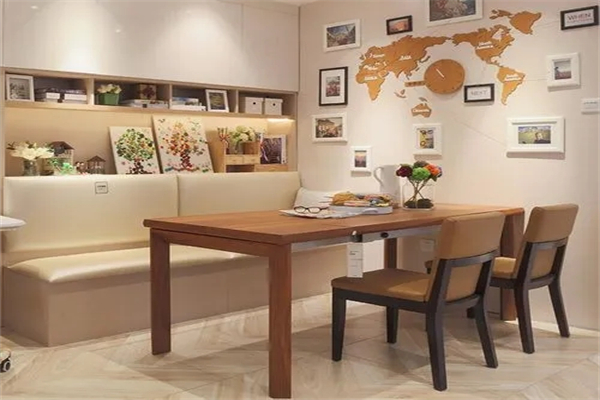 对于餐厅家具颜色搭配来说,主要的颜色是棕色、棕黄色、杏色等,这些颜色能够让人平静下来,而且可以增加用餐时的食欲。其他颜色如灰色、紫色等颜色的家具,应该避免在餐厅中使用,会影响用餐。