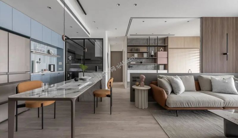 金桥天海湾127平米轻奢三居室装修案例风效果图