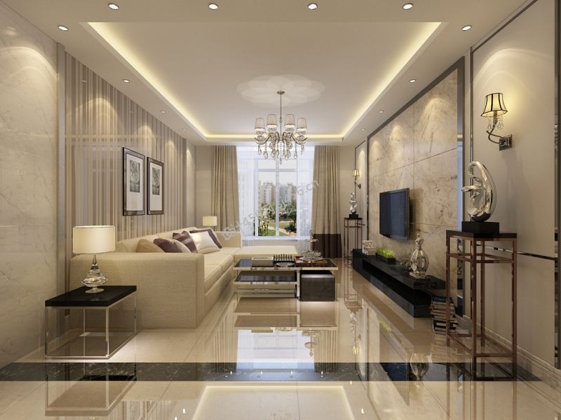130平米简约风格客厅瓷砖背景墙设计装修效果图