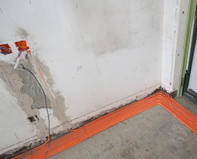 ◆水路多是PP-R水管,冷热水管不能够混用,因为它们的管壁厚度和压力等级都不同。另外冷热水管也要保持一定的距离,否则会影响水管的保湿效果,洗澡时需要等很久才有热水。一般水管铺设时,左热右冷,间距是15cm。