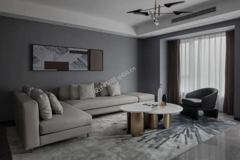 河北紫苹果装饰 华润置地136平简约黑白灰风格装修案例