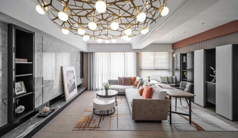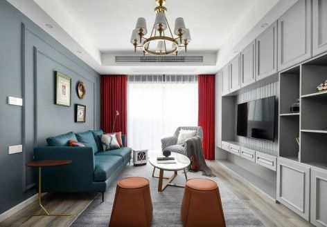 93平米现代轻奢风客厅二居室装修效果图