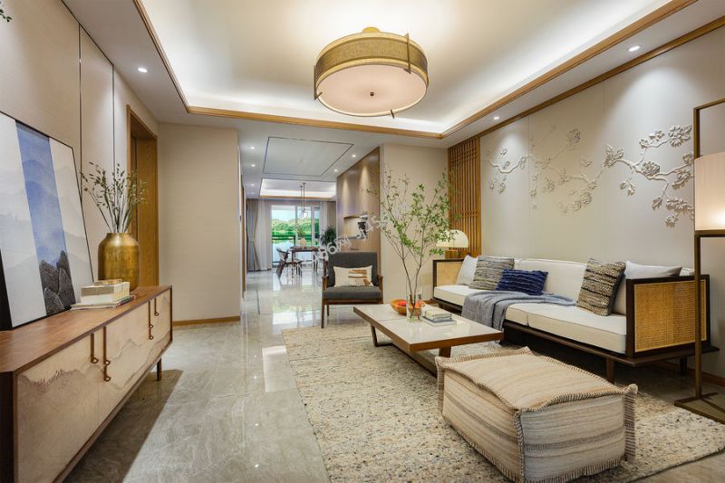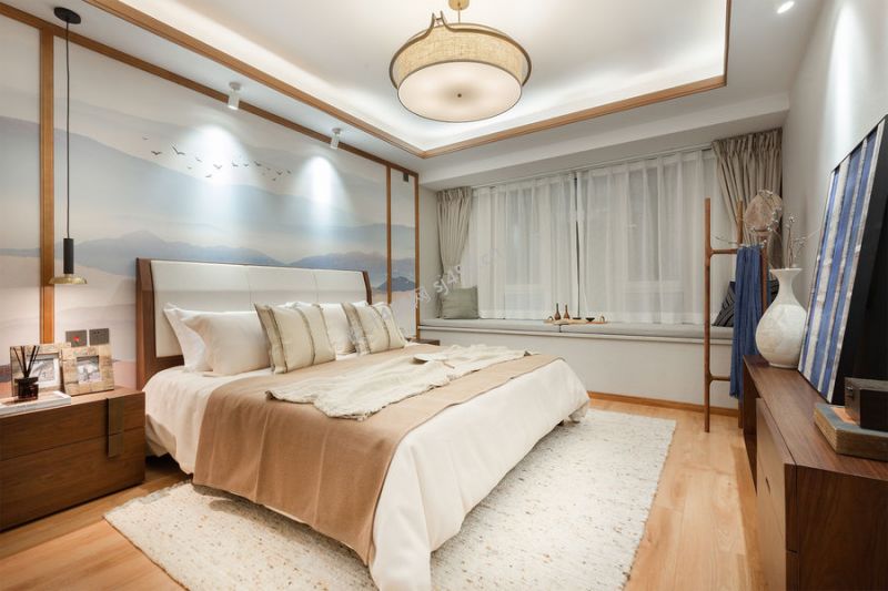 金科美湖湾128平新中式风格三居室装修案例风效果图