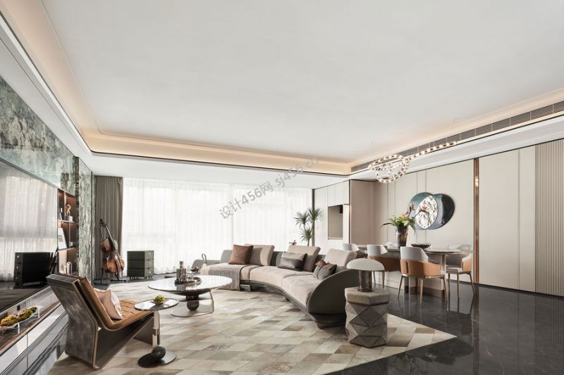 尚城雅庭138平轻奢风格三居室装修案例风效果图