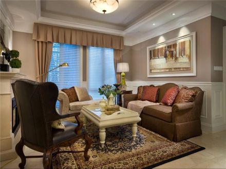 三居116平美式风格客厅设计图欣赏