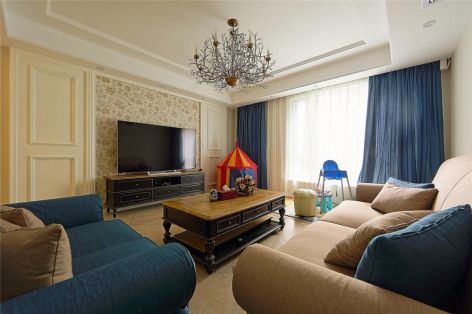 健坤华翔城三居122平美式风格装修案例风效果图