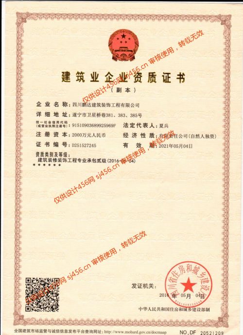 四川鹏达装饰工程有限公司是一家专业从事时尚家居、商业空间、娱乐场所、售楼部、办公楼等装饰装修设计施工为一体的综合性公司。公司拥有属于自己独立产权的400平米营业房,属于有实力、讲诚信的遂宁本土企业。 公司成立于2002年,前身是四川鹏达广告装饰有限公司,2009独立为四川鹏达装饰工程有限公司,2015年12月更名为四川鹏达建筑装饰工程有限公司,公司现注册资本为贰仟万,国家二级资质企业。公司现有员工38人,工程车2台,各种施工机具齐备,公司拥有自主产权的办公场地400多平方米。 十多年来公司始终抓住工程质量与服务满意度两个中心,以“高起点、严要求、专业化、创精品”为经营理念,以“专业铸就品质”的企业文化,以内部规范管理、树立企业形象为切入点,不断提高企业品质,增强企业市场竞争力。 公司近年来承接了移动遂宁片区各营业网点装饰装修,邮政储蓄乡镇网点装饰装修,电信德胜路营业厅装修,凯丽滨江售房部装修,回春堂药业部公司展示厅装修,观音湖办公室及样板房装修,世纪锦江售房部装修,布丁酒店,明星电力小白塔厂房装修,高升街教学楼改造装修,盐市街小学教学楼改造,国税局服务大厅装修,国税局周转房装修,国税局物流港服务大厅装修,联通营业厅装修等工程。 公司拥有一支严谨务实、优质高效的管理团队,创新拔尖的原创设计队伍,爱岗敬业、训练有素的专业施工团队。公司以真诚贴心的售后服务,珍惜每一次服务机会,踏踏实实、孜孜以求,赢得了广大业主的认可。 鹏达装饰人将品牌声誉视同生命,以质量为本、设计为先的服务理念,以客户为中心,想客户之所想,达客户之所需。 鹏达装饰專業 ● 鑄就 ● 品質