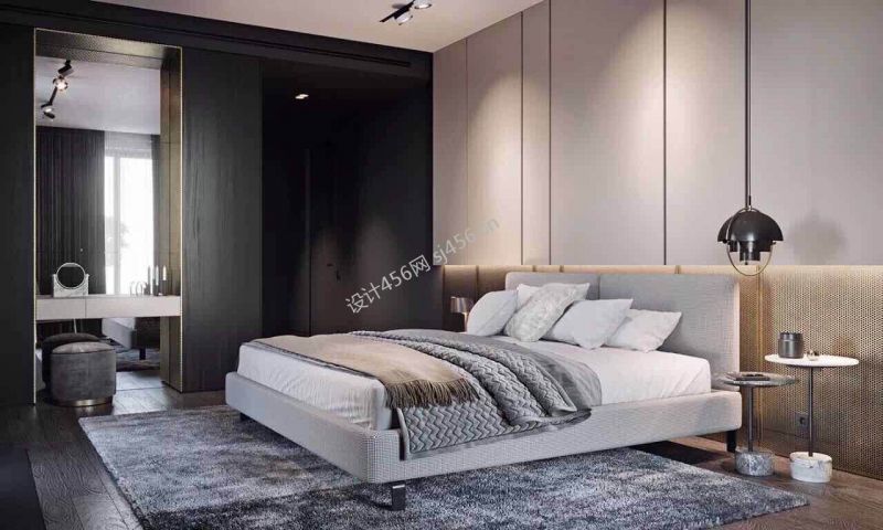 2020简约卧室装修效果图大全 黑色窗帘装修效果图片
