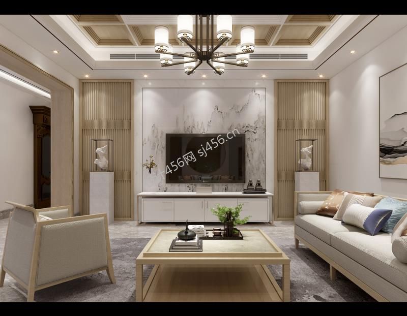 玫瑰河畔三居122平美式风格装修案例风效果图