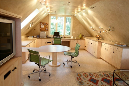带阁楼一般都是属于斜面,尖顶型,因此我们在选择家具时,尽量找一些比较专业的设计师进行设计,定制的家具它可以充分的使用好阁楼中的每一个角落和空间,这样就能节省出更多的活动空间。