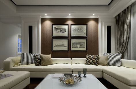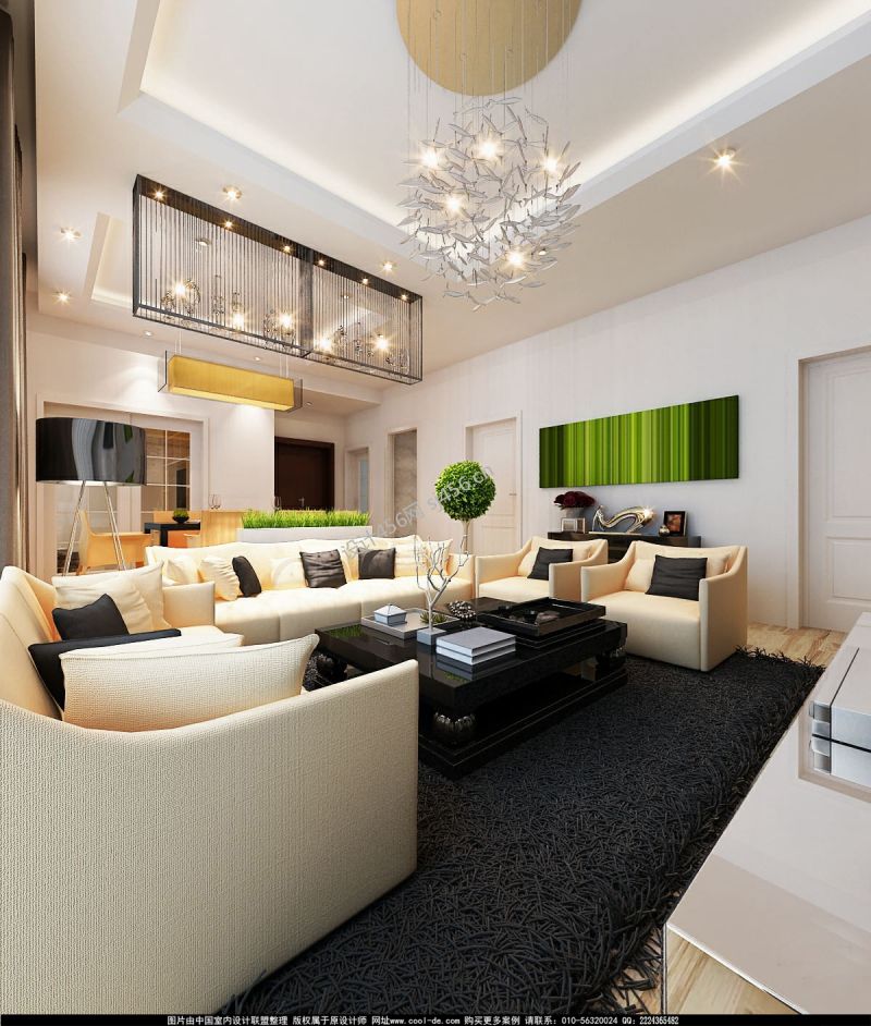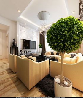 康华花语城129平米三居现代客厅吊顶装修设计效果图