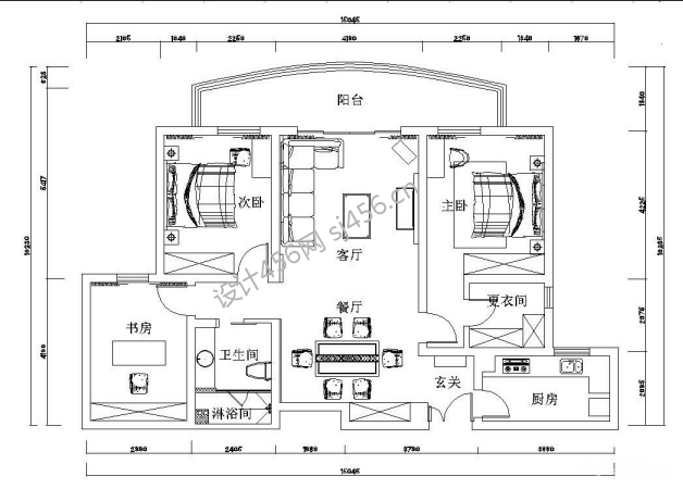 世纪花园125平米三居美式平面图