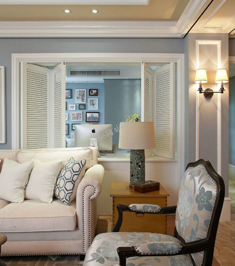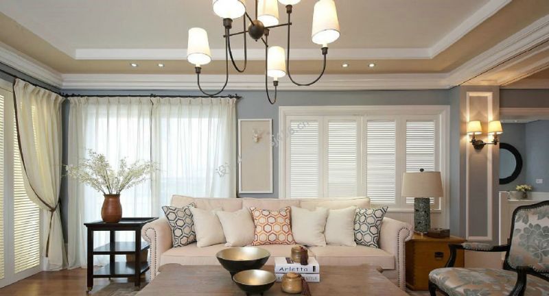 汉东星都126平简约美式客厅沙发摆放装修图片