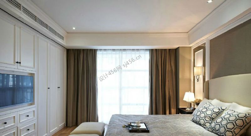 汉东星都126平简约美式卧室电视柜设计图片欣赏