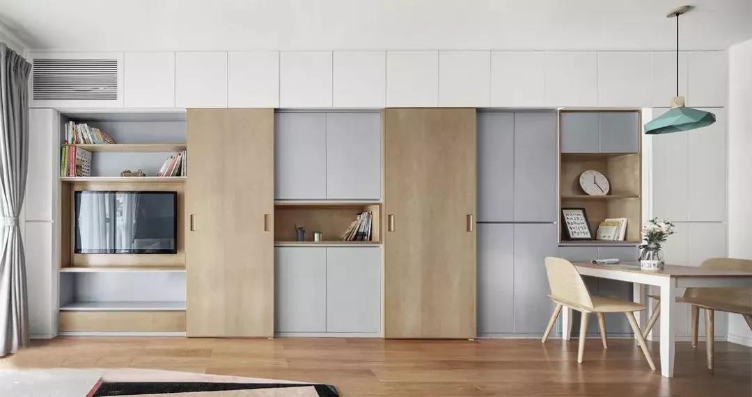 很多人觉得把电视墙一整面变成书柜会显得太杂乱,其实现在流行的混合搭配可以做到有设计感的同时满足你的需求,将储物柜、书柜、置物架、展示柜、装饰画等根据自己的需要开动脑筋合理布置。