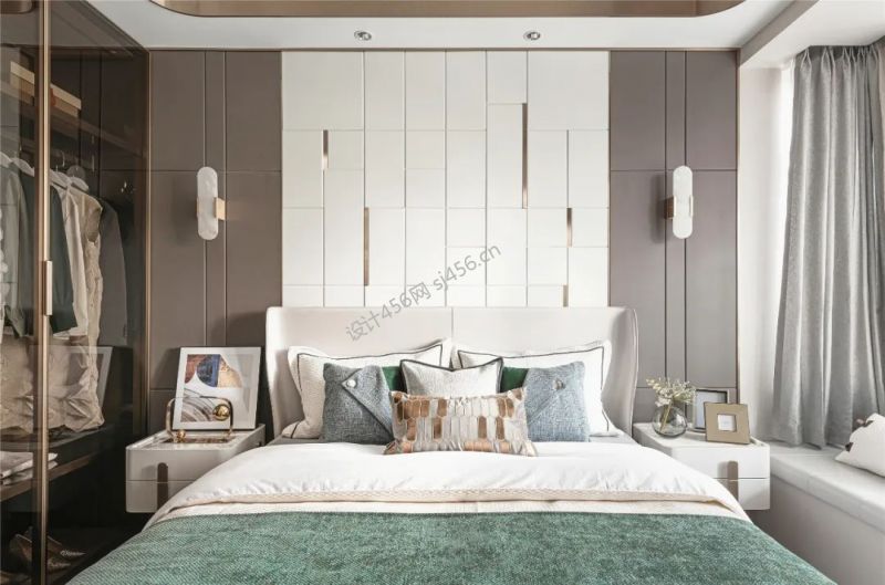 现代风格127平米三居室卧室床家装效果图
