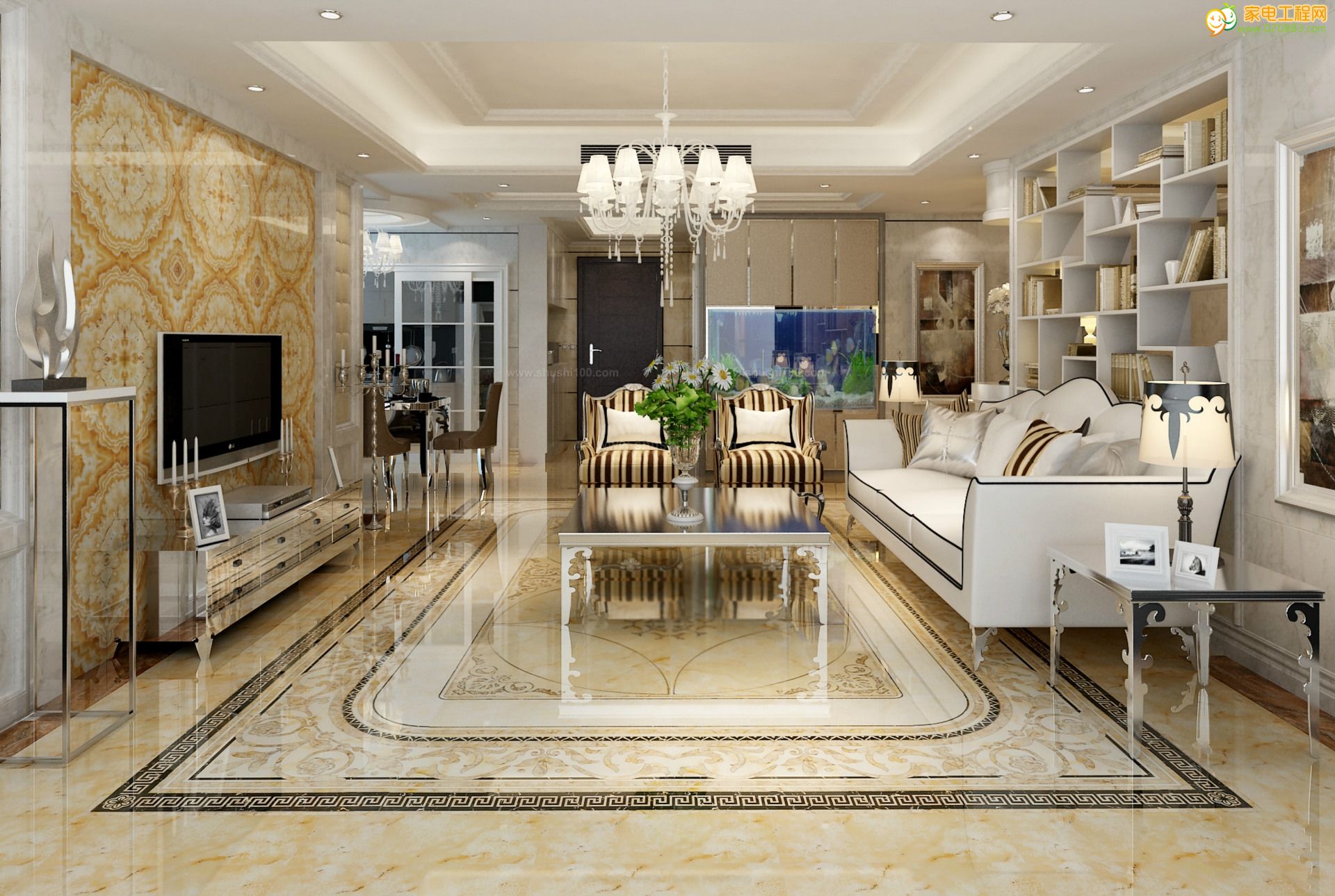客厅比较适合铺浅色瓷砖,比如米黄色、白色等等,这样更能体现出主人的高雅,但纯色不耐脏,要经常清洁,对于工作比较繁忙的朋友,可以选择耐脏的瓷砖。