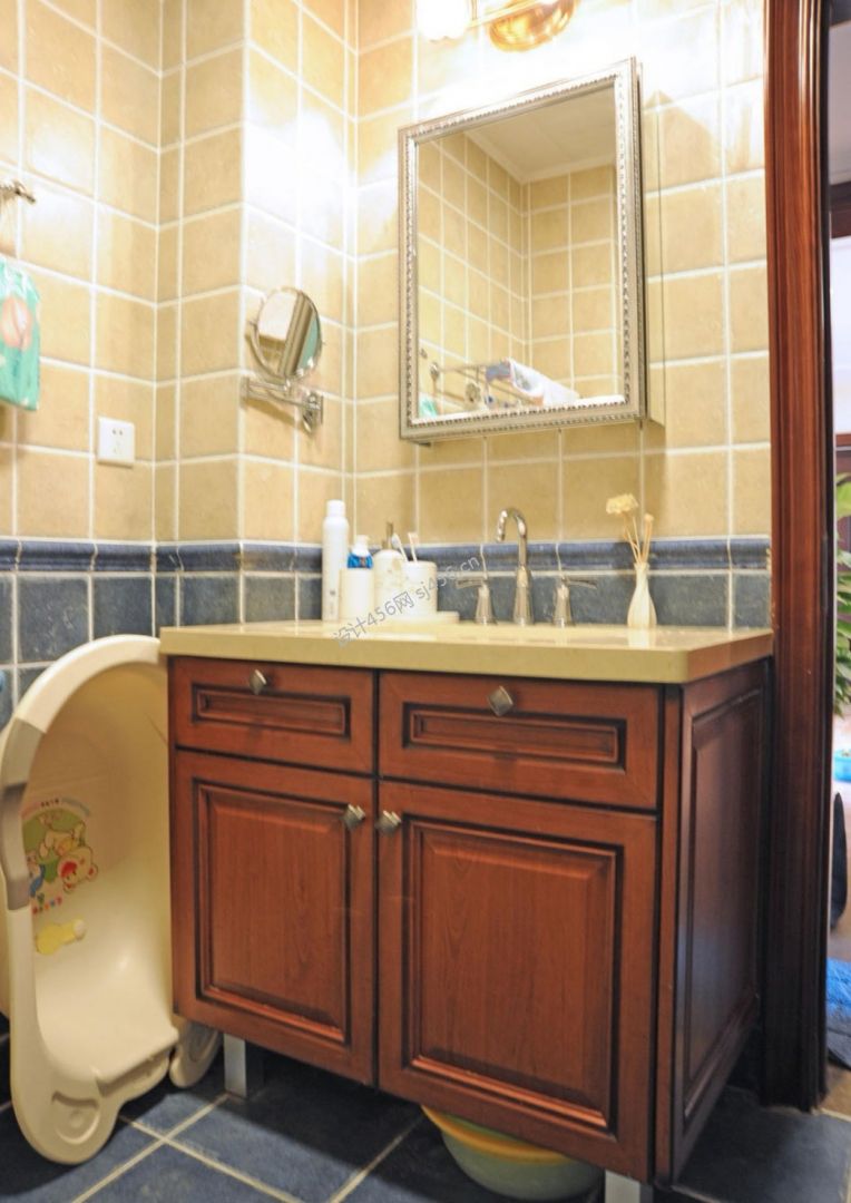 130平米美式沉稳三居室卫生间洗漱台装修图片