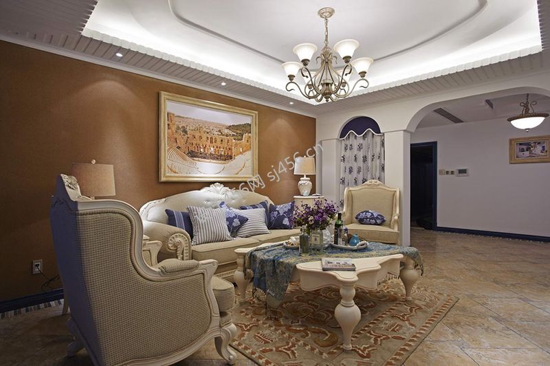 汇置尚岛113平米三居室地中海装修案例风效果图