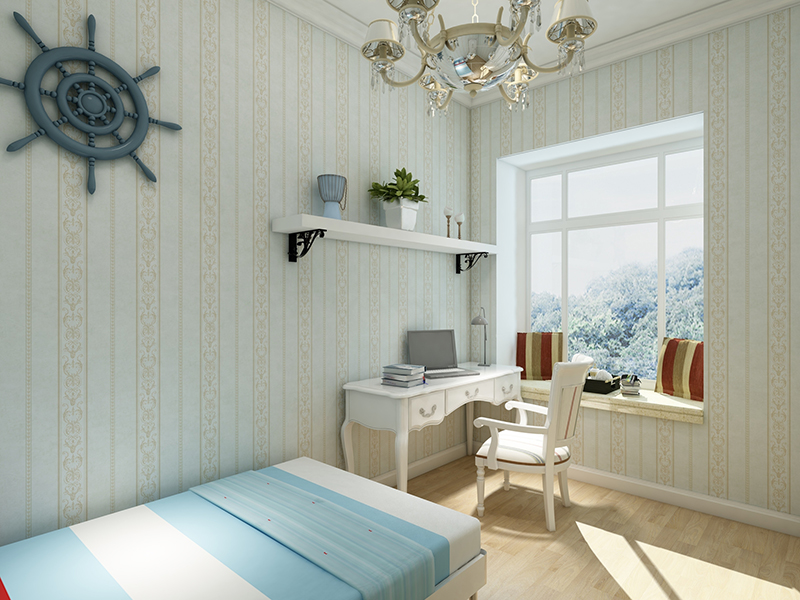 另一间卧室的吊顶也是简单为主的,浅黄色的基调显得整个房间十分明亮。