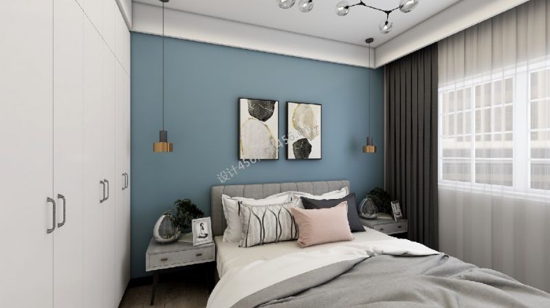 125平米北欧简约三居室卧室背景墙装修效果图