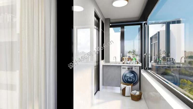 100平米北欧风格三居室阳台洗衣机柜装修效果图