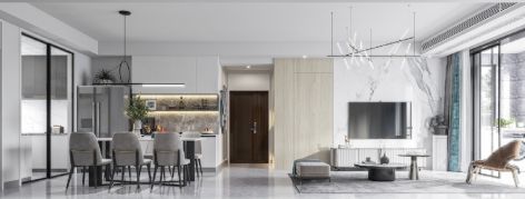 澳海澜庭106平米现代简约三居室装修案例风效果图