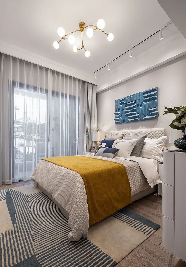 122平米现代简约三室两厅卧室背景墙装修图片