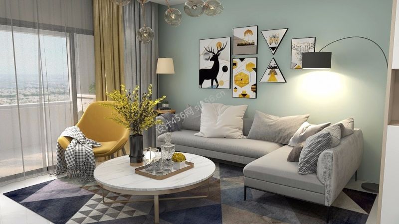 100㎡北欧简约三居室客厅沙发墙装修效果图