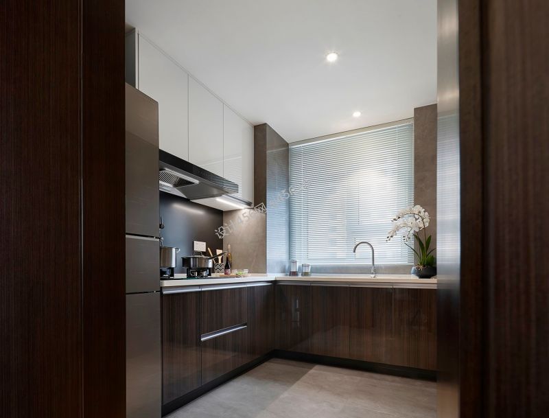 128平现代中式混搭三居室厨房橱柜装修图片