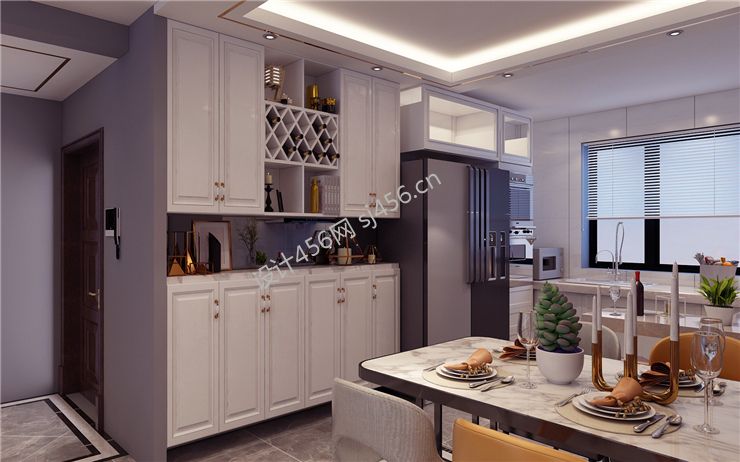 港式轻奢风格142平4居室餐厅柜子装修设计效果图