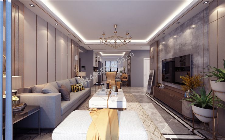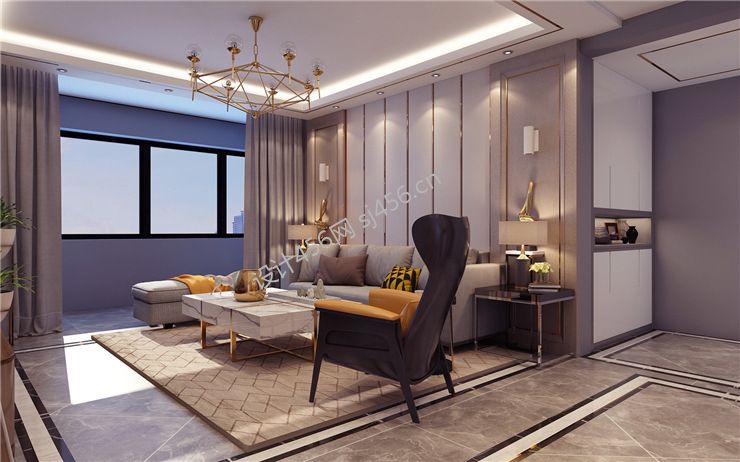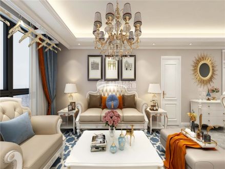 中冶上河湾港式轻奢风格142平4居室装修效果图风效果图