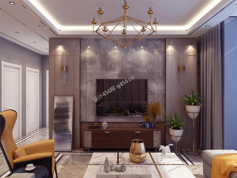 港式轻奢风格142平4居室背景墙装修设计效果图