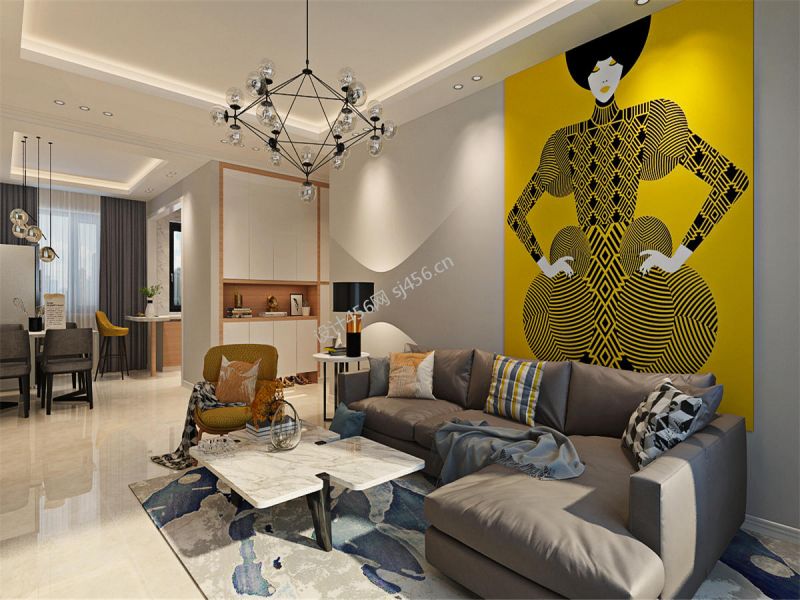 现代风格二居100平装修设计效果图风效果图