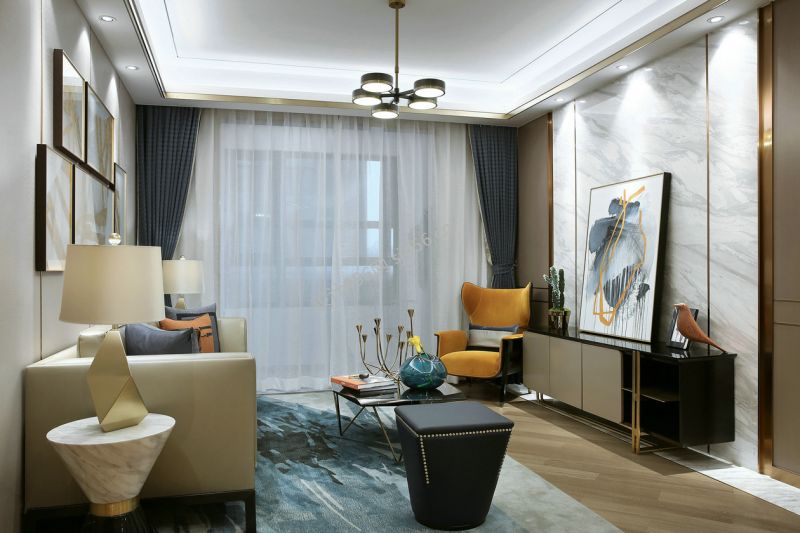 万科东第轻奢风格111平米三室两厅装修案例风效果图