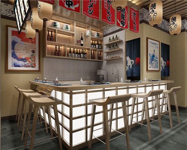 3.寿司店装修的色彩处理在完成商店的造型效果中起着非常重要的作用。寿司店的装饰品应充分利用色彩的对比度和和谐性,以增强形状的艺术特征,丰富形状的效果并创造相对理想的视觉吸引力。