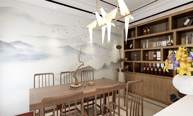 98平米中式风格餐厅酒柜装修效果图