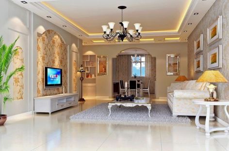 国瑞城四居150㎡简欧客厅过道装修效果图