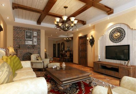 格林馨港湾137㎡美式乡村三居室装修案例风效果图