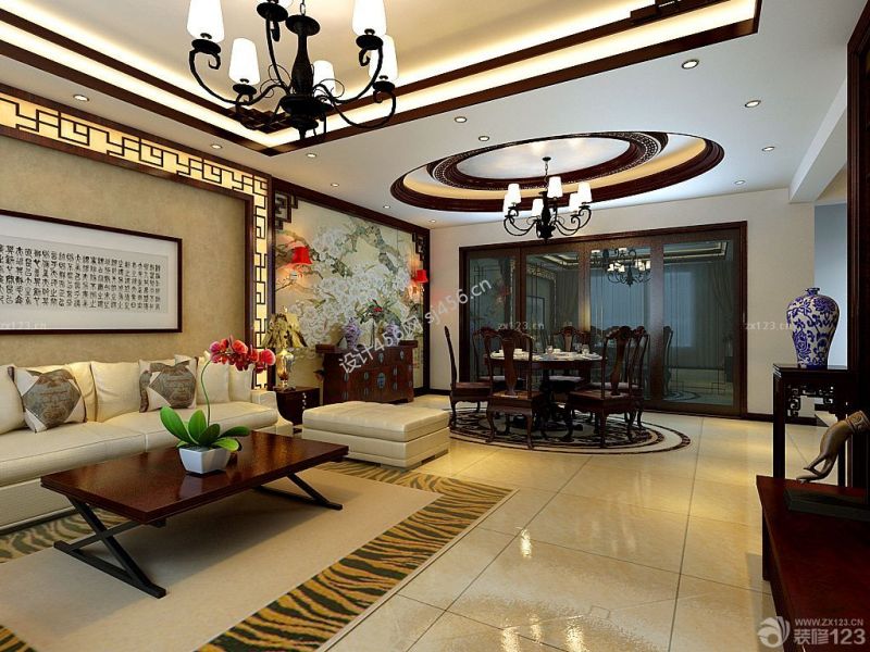 中式风格家装餐厅吊顶设计装修效果图片欣赏