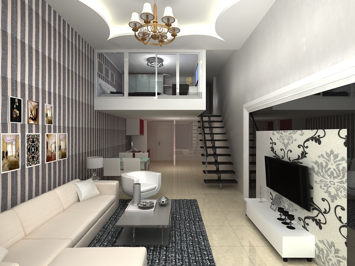 1、跃层装修的客厅一般会选择中空设计,使楼上楼下有效结为一体,有利于一楼的采光、通风效果,更有利于家庭人员间的交流沟通,也使室内有了一定的高差,这种立体空间,顿显一份尊贵和大气。正由于有了足够的楼高落差,设计时要注意彰显这种豪华感。如在做吊顶时对灯具的款式的选择面更大一些,可以选择一些高档的豪华灯具,以体现主人的生活和思想的品位。