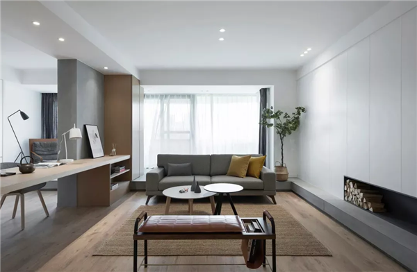 一台电脑、一根网线就可以开始工作了。现在很多自由职业的年轻人在家工作成了他们的职业生活,如果你也是一位在家工作的自由职业者那么在布置客厅的时候也可以以工作台为中心,在客厅中间摆上办公桌椅,享受轻松自在的居家工作与生活。