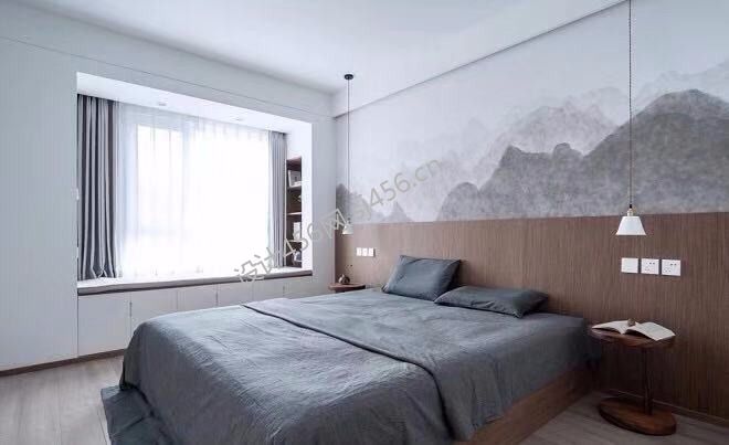 110平米现代简约风三室两厅卧室背景墙装修图片