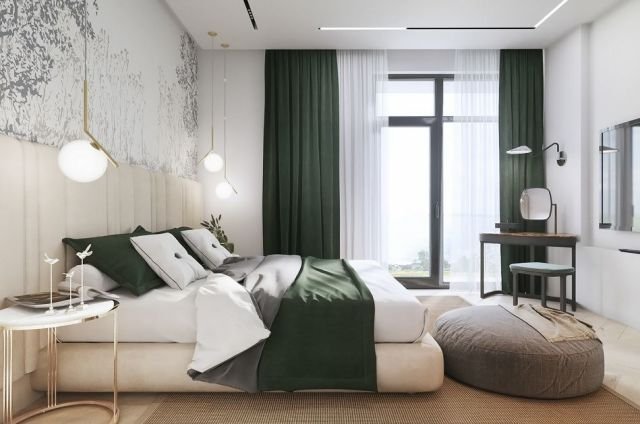 若灯具选好了,居室的美感与颜值,自然会得以极大提升,这里床头两边悬挂的吊灯,真心漂亮。然后床尾墙壁上,还装有壁灯,桌子上也有台灯,这些分散式灯具一应俱全,照明不在话下。