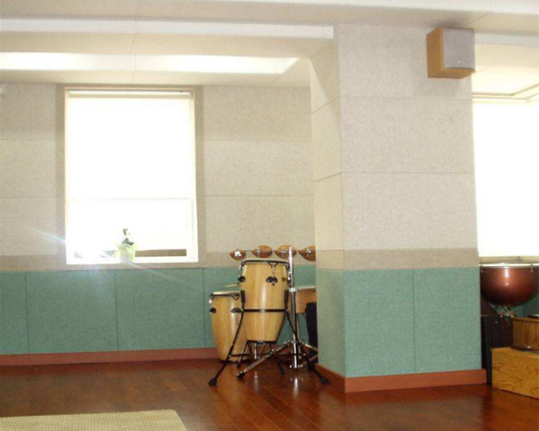 聚酯纤维吸音板,与其他多孔材料的吸音特性类似,吸音系数随频率的提高而增加;高频的吸音系数很大,其后背留空腔以及用它构成的空间吸音体可大大提高材料的吸音性能;降噪系数大致在0.8~1.10左右,成为宽频带的高效吸音体;其所组成的吸音体除了吸音系数高、吸音频率宽等声学性能之外,还具有良好的物理力学性能、室内性能。