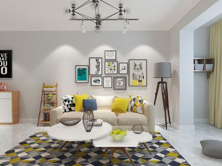 恒润雅筑91平米北欧风格装修案例风效果图
