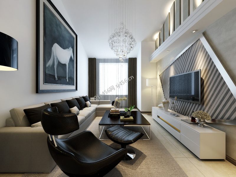 保利溪湖林语86平米现代简约风格装修案例风效果图